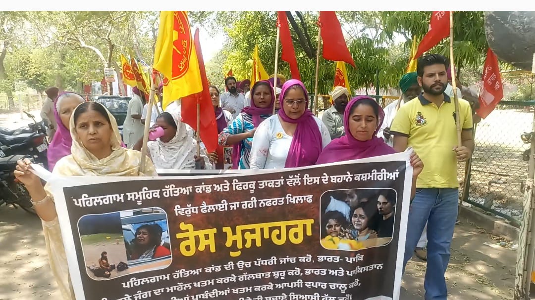 पहलगाम घटना को लेकर मोगा में कीर्ति किसान यूनियन का रोष प्रदर्शन, दोषियों के खिलाफ सख्त कार्रवाई की मांग।