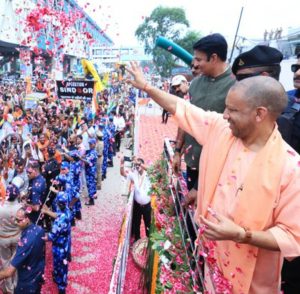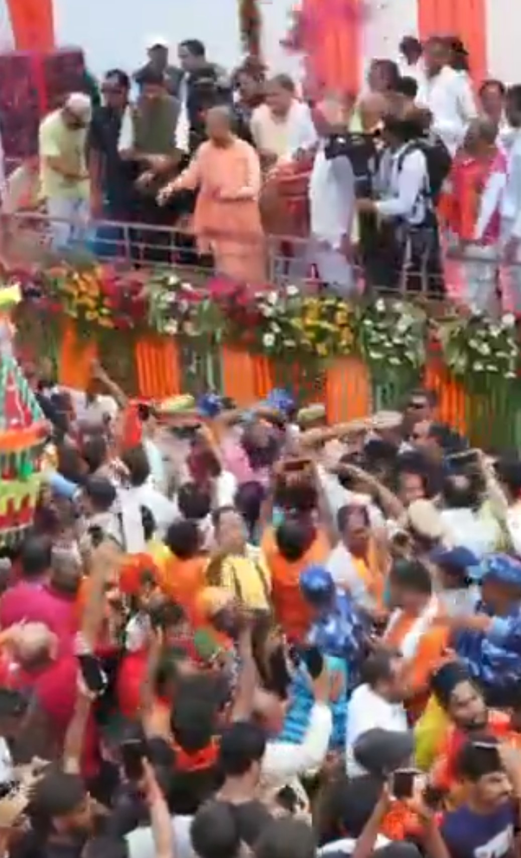 मेरठ (उत्तर प्रदेश), मुख्यमंत्री योगी आदित्यनाथ मेरठ के मोदीपुरम में शिवभक्तों पर पुष्प वर्षा कर स्वागत किया। और अपनी श्रद्धा के साथ शिवभक्तों को नमन किया।